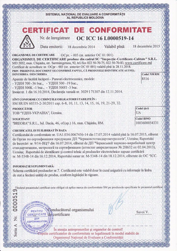 Сертифікат відповідності Молдови