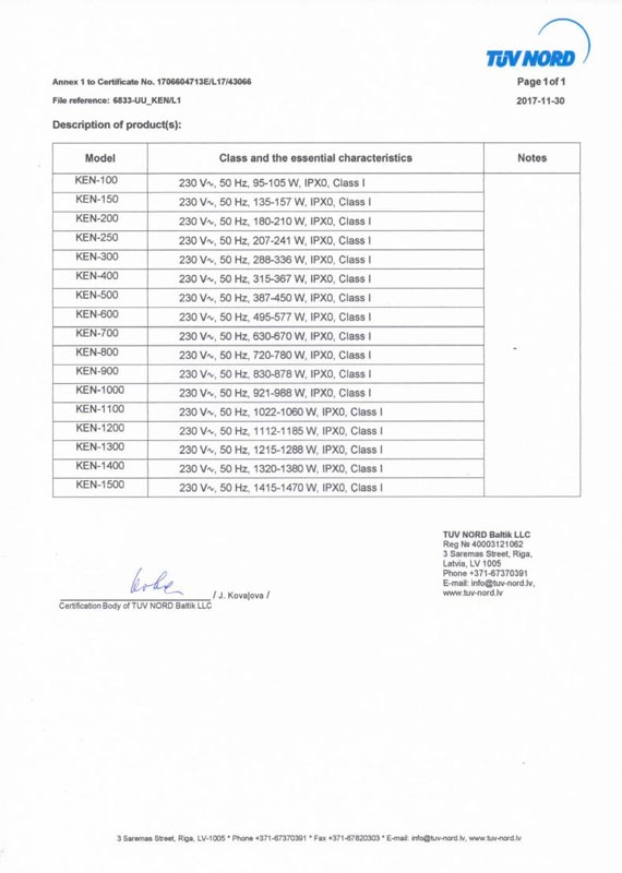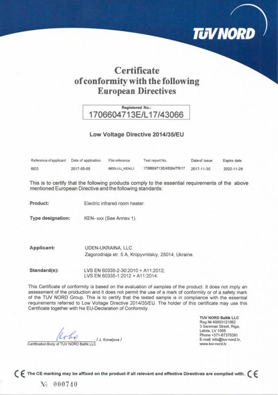 Certificate of conformity СЕ (KEN) ст.1