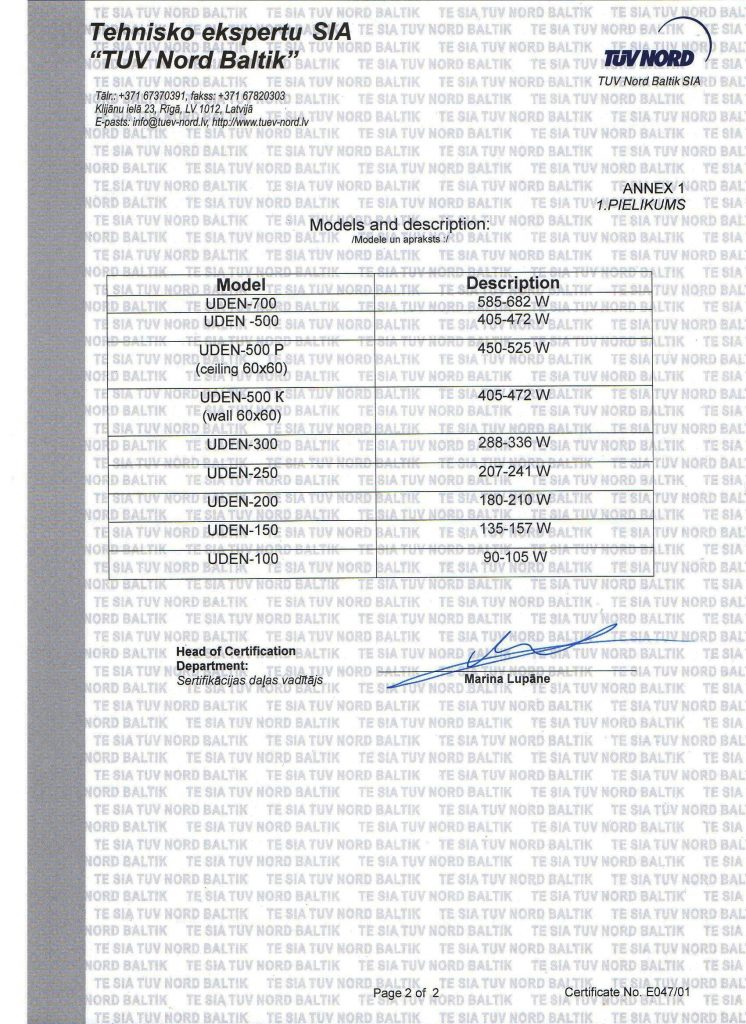 Certificate of conformity СЕ (UDEN) 2ст.